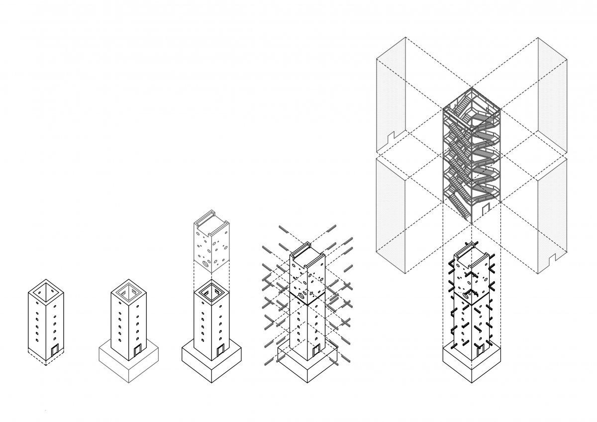 The project is located on the 1100 km long "Blue" national tourist route which passes through the hills of Northern Hungary. The lookout tower makes an innovative and contextual impact on Galyatető, enhancing the experience of location and nature at the second highest peak of the Mátra mountains. It is a found object made of stone. The materials used are quite puritanical, the harmony of the extant stone quarry and exposed concrete prevail in the building's reconstruction and extension. The combination of old and new materials creates a contemporary built environment. The Galyatető lookout tower is the most highly situated lookout tower of Hungary, with its top at 1000 metres. Over the years, trees have overgrown the building, therefore it craved for heightening. The top level was elevated in the form of a reinforced concrete addition. The inner core of the extension's concrete structure hosts 3 bivouac shelters lighted by colourful circular windows, creating a special atmosphere for the hikers who hanker to get some rest here on their journey. After the significant structural reconstruction, the preserved outer wall also plays a new role. The double mass of the inner core is encircled by a steel stair-system covered with a fine, loosely woven stainless steel mesh at the external edge of the stairs. The project is another gem of the ‘XXS architecture’ series by NartArchitects.