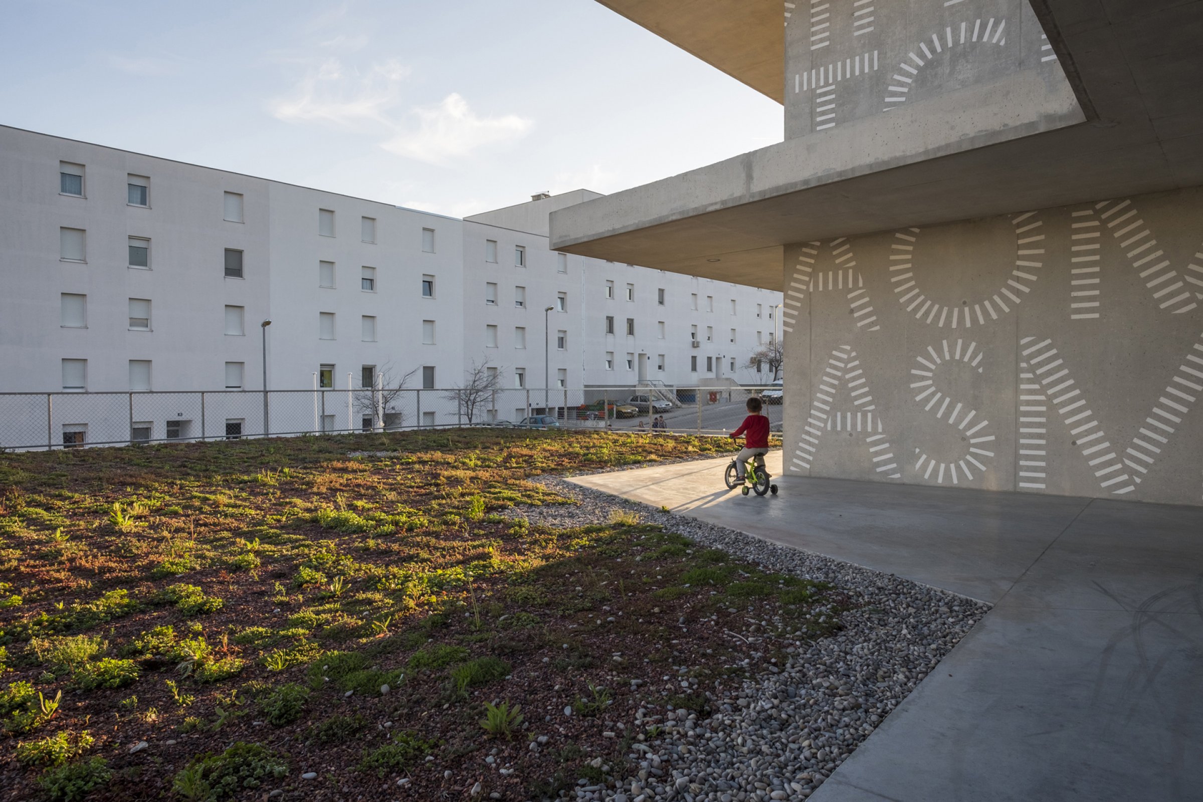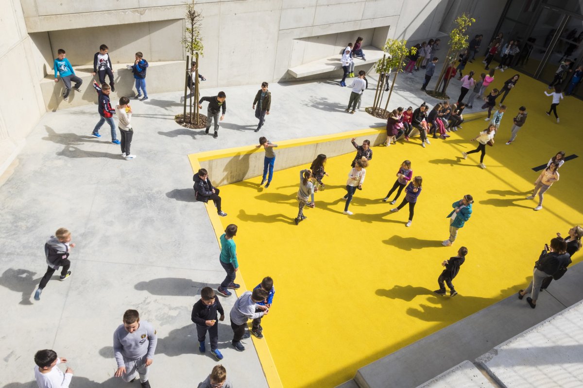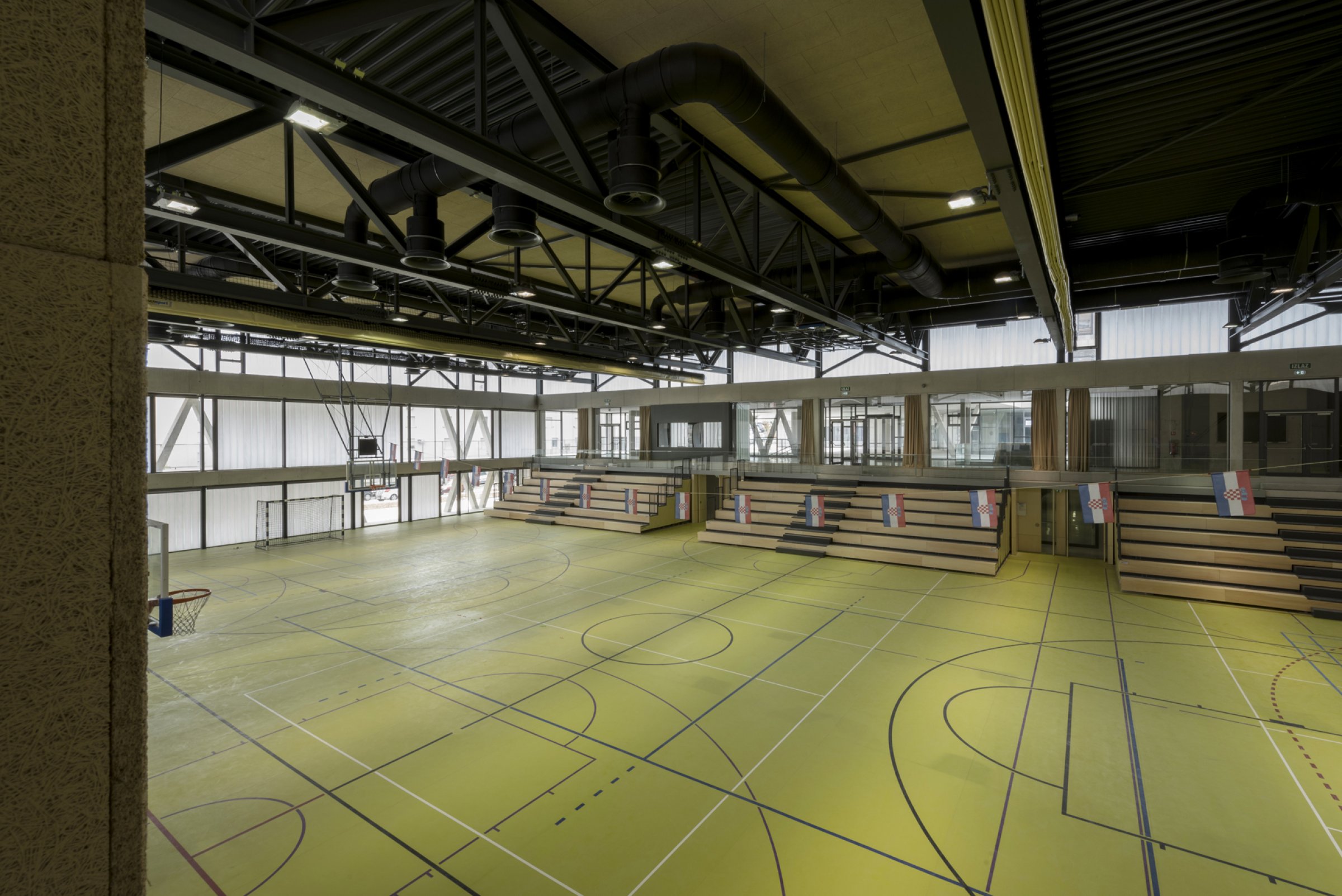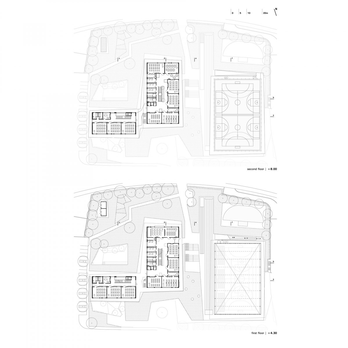 Nowadays it is harder than ever to create space for ourselves, while we need (to open and create) space for others, more than ever before. We live in times when socially and economically tolerated exclusivity leaves harmful and irreparable traces everywhere around us. New apartment buildings and housing developments with the severe lack of public spaces come at way too high a price, constraining their residents to a lifestyle in which "being" and spending time outside their home means travelling to distant areas of the city. Designing public buildings is one of those rare opportunities when the available space can be offered to the entire community. For the last 25 years the Pazdigrad neighbourhood of Split has been going through the process of transformation from agricultural suburbia into a residential area. This is the area of the city where one can still find abandoned farming fields, family gardens and orchards, commercial greenhouses, as well as small craftsmen’s workshops, service stores and family houses next to the new multi-story housing establishments, apartment buildings and shopping malls. Pazdigrad neighbourhood is one of the many examples of the type of "urbanism" where the legislative vacuum within urban plans’ implementation has forced and imposed private owner and investor interests on the basic standards of city planning. Within such circumstances, public space in the area is nonexistent and is entirely reduced to the network of streets, without adequate, or indeed, any kind of hierarchy, coherence or interconnection. The area where the school is located is one of the so-called suburban "islands", coincidentally formed by such a network of streets. For all of these reasons, this space is envisioned not merely as a place of education, but rather as a common space, constantly accessible to all the residents of the neighbourhood. The idea of the project, even in the early phase of the competition was to create a place for socialising, playing, recreation, fun and relaxation, with the aim to strengthen integration and community by enabling numerous new scenarios of use and the possibility of different activities within the school surroundings. The topography of the site, positioned on the steep slope, was used to multiply the available space of the plot by creating platforms stacked one above the other. The spaces of the school, sports hall and courts are formed in between, complemented by the open spaces around them accessible to all the residents of the area. The newly "created" public space ‘disguises’ the dimensions of the school building. Several days before the start of the school year the construction site fences were removed around the site. Within just a few hours, all of the public platforms were already in use.